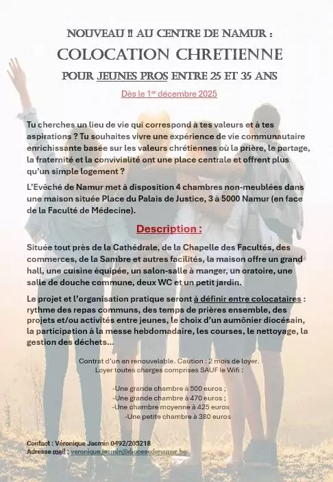 Au cœur de Namur, à deux pas de la cathédrale, une colocation chrétienne pour jeunes professionnels (25–35 ans) est en train de voir le jour.