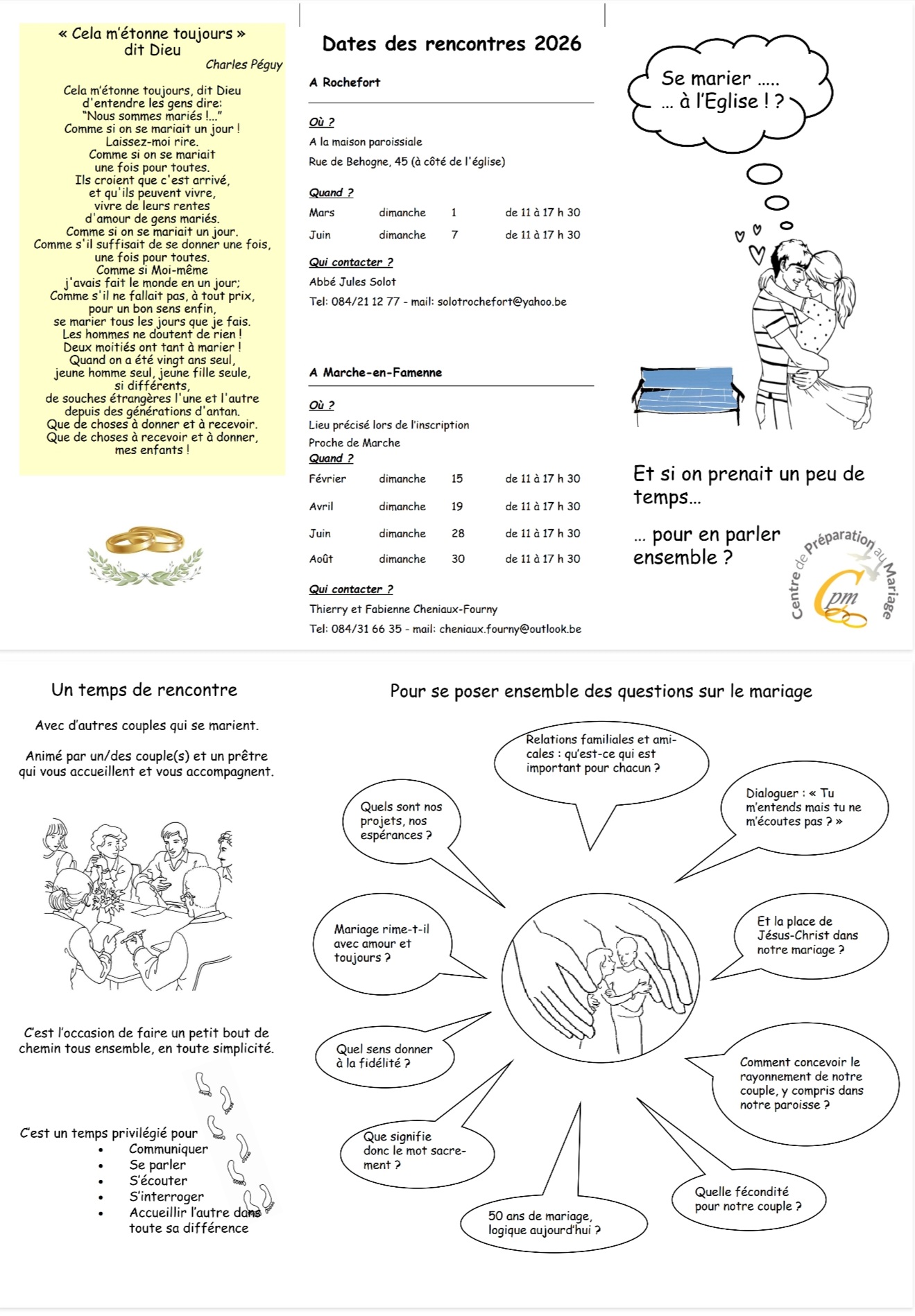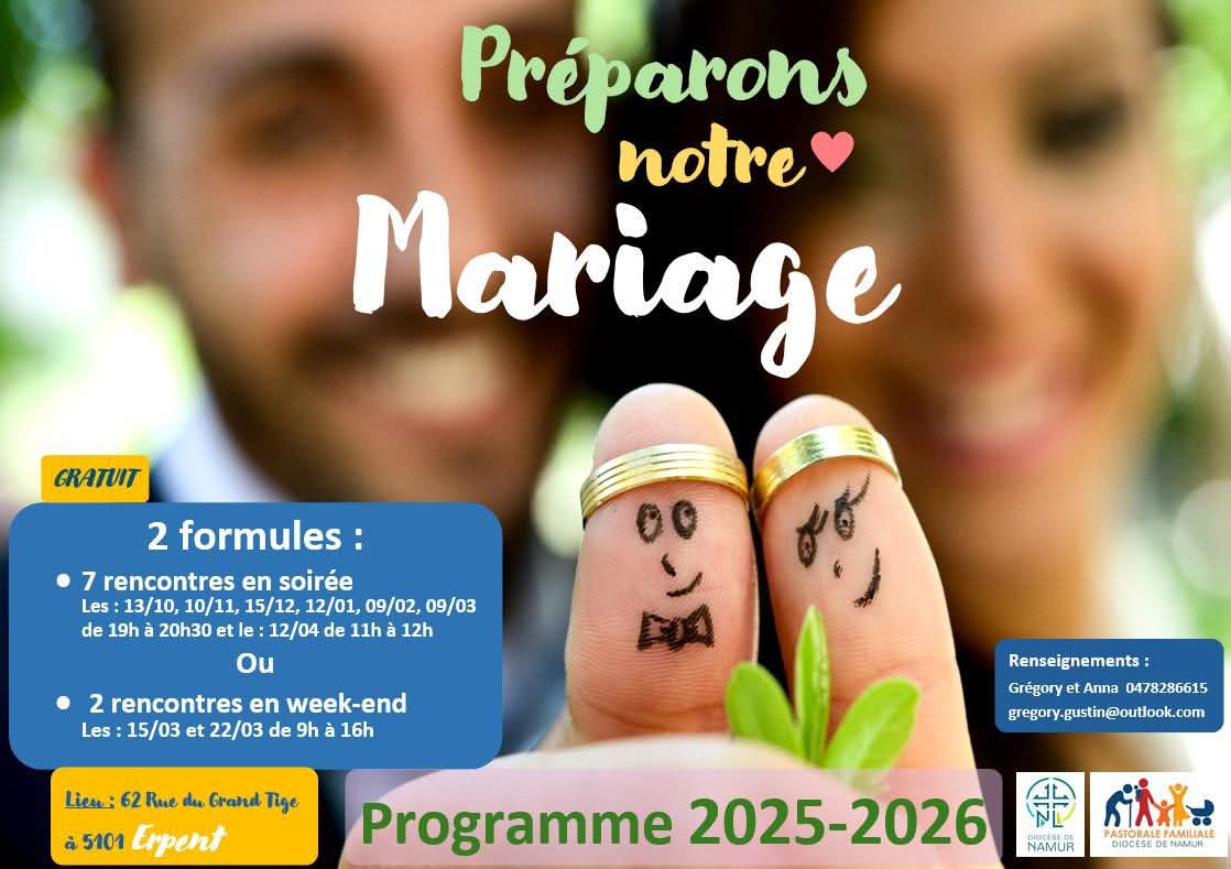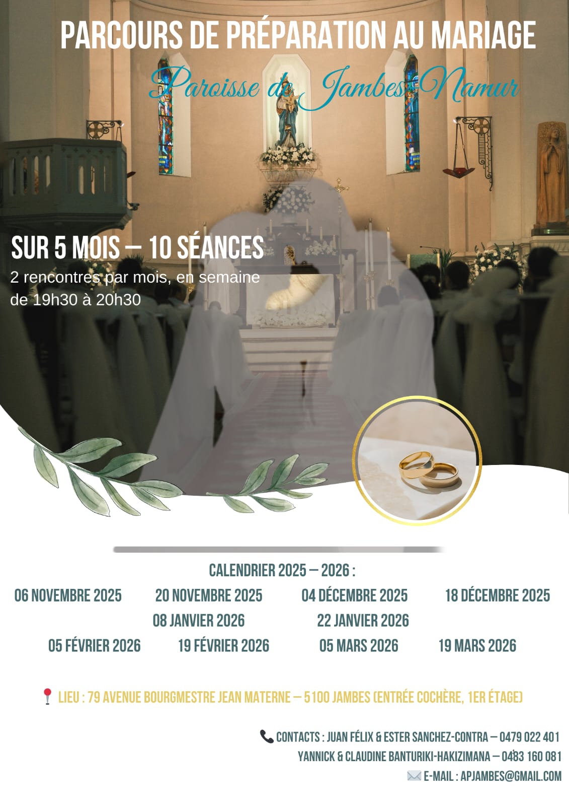 Pour vous aider à préparer ce grand “oui”, la paroisse Sainte Julienne (Namur) propose un parcours animé par une équipe de couples mariés et un prêtre.